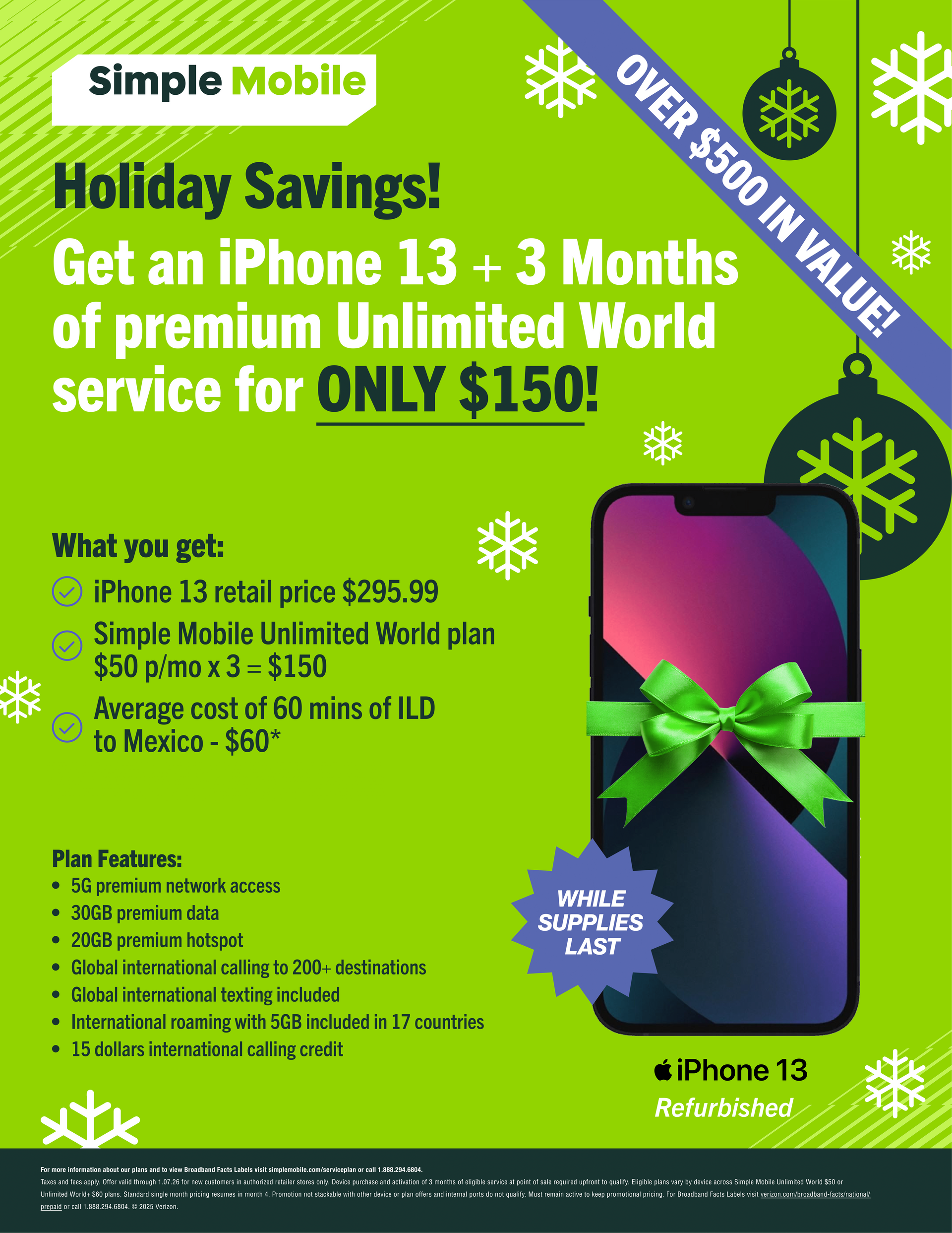 We offer Verizon, AT&T, Simple Mobile, and more! Come and choose from any one of our amazing wireless services. No credit check! Pre-paid wireless services, all without the worry, with Family Plans available!